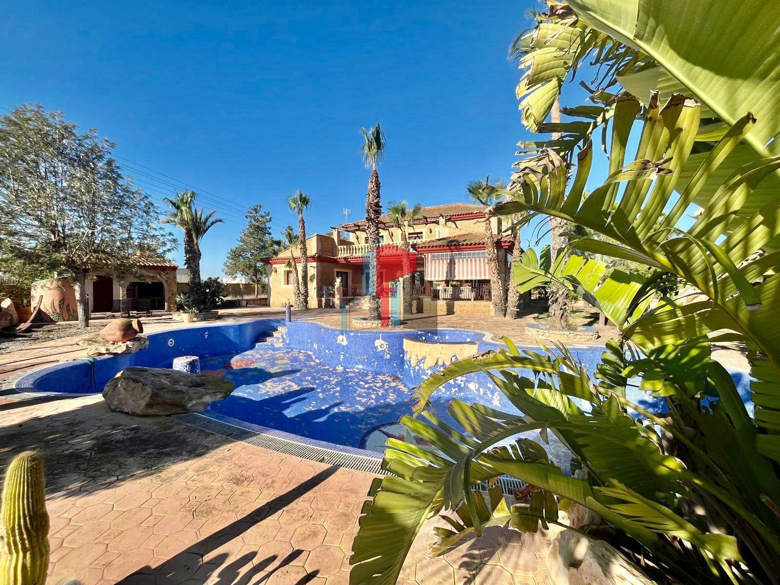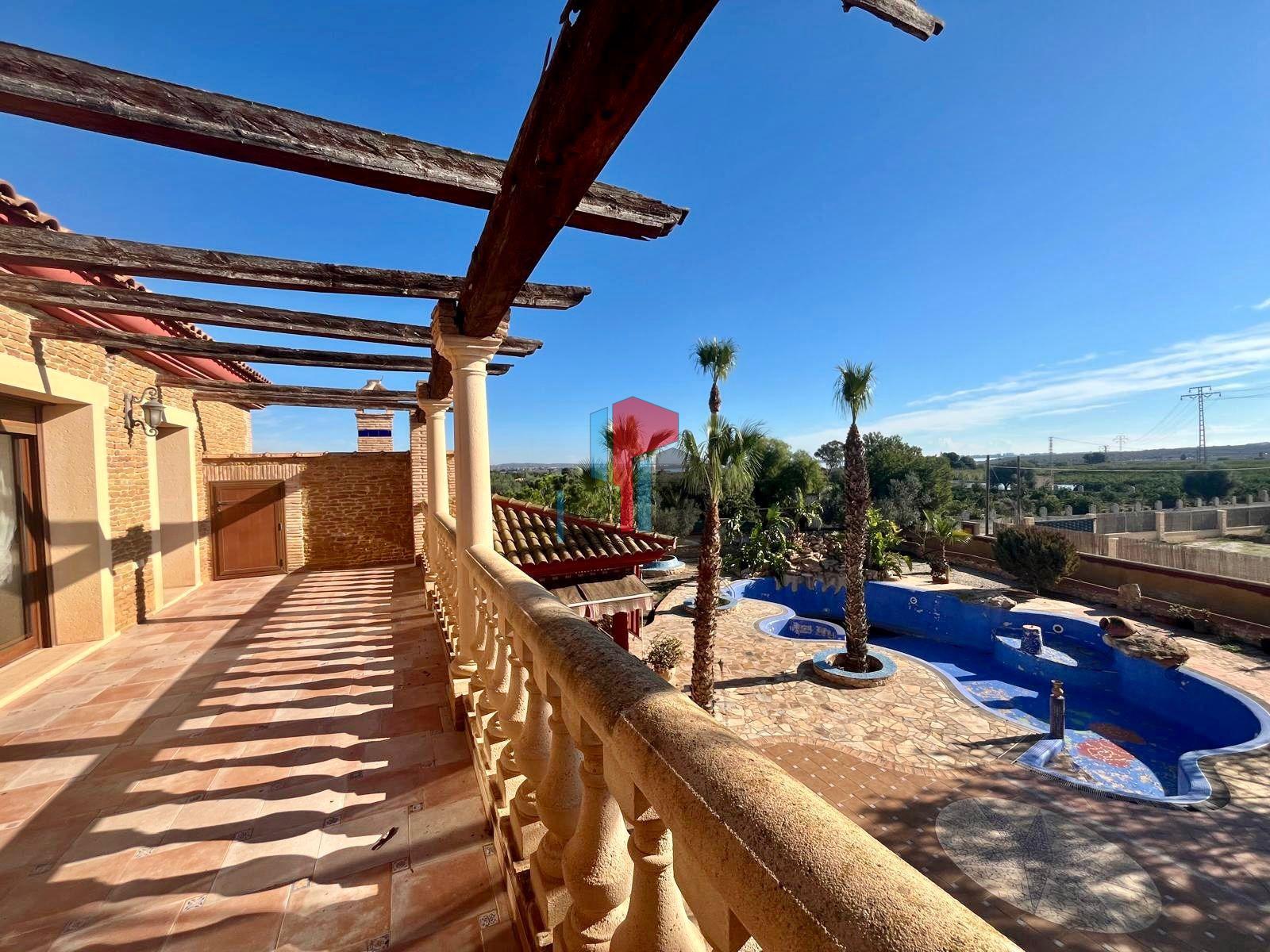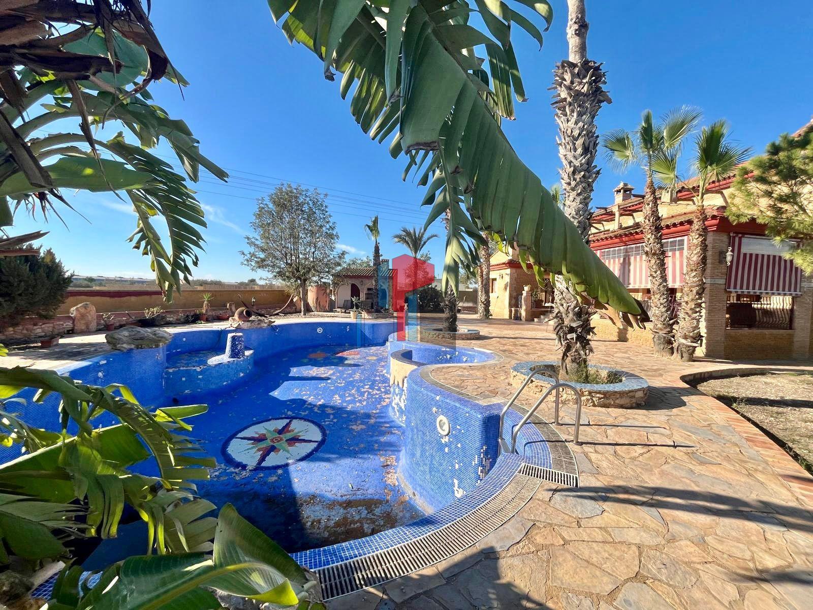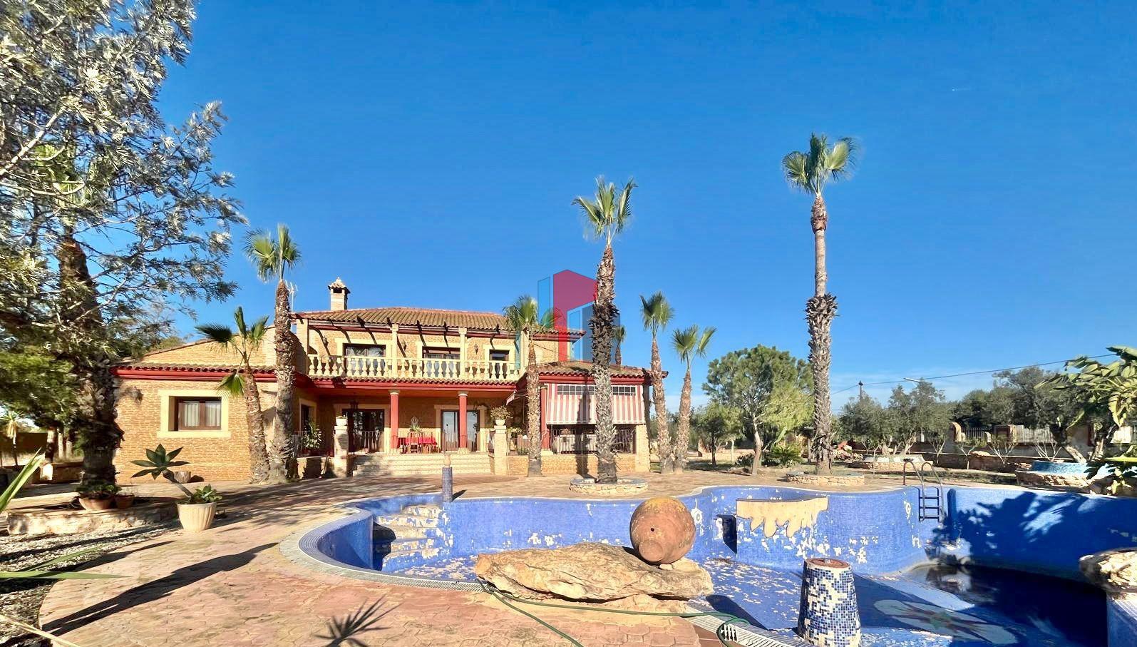 Descubre el Lujo y la Tranquilidad: Casa de Campo en Rojales con Amplios Espacios y Naturaleza: Esta increible casa de campo, situada en la parte rural de Rojales, ofrece un estilo de vida tranquilo y lujoso en un entorno rural, con la comodidad de tener todas las comodidades urbanas a pocos minutos de distancia. Con una parcela de 10.791 metros cuadrados y una casa de 430 metros cuadrados, esta propiedad ofrece un espacio generoso tanto en el interior como en el exterior.~~Características de la Casa:~~Al entrar en la propiedad, serás recibido por un encantador porche de 12 metros cuadrados, que te lleva a través de dos entradas diferentes hacia el interior de la casa. Una entrada conduce a una cocina independiente grande y totalmente equipada, con todos los electrodomésticos necesarios para la vida moderna. También hay una galería adjunta para guardar utensilios de limpieza, lavadora, secadora y más.~~El corazón de la casa es un espacioso salón con chimenea y hermosas vigas aparentes, que le otorgan un toque rústico y acogedor. Desde el salón, se accede a una habitación de buen tamaño que ofrece vistas al jardín y la piscina, tenemos un vestidor y un lujoso baño con doble lavabo, jacuzzi y ducha. Además, hay un aseo adicional para los invitados en esta planta.~~Segunda Planta y Garaje Subterráneo:~~Las escaleras te llevan a la segunda planta, donde encontrarás dos habitaciones amplias y luminosas, cada una con armario empotrado y acceso a un gran balcón que conecta ambas habitaciones. También hay un baño completo con ducha y otro salón grande, que está listo para ser adaptado como sala de cine, sala de juegos, gimnasio o cualquier otro uso que desees.~~Otras escaleras te llevan al garaje subterráneo, donde hay espacio para aparcar fácilmente 6 coches, así como un baño y un trastero adicional.~~Exterior y Terreno:~~En el exterior, la propiedad cuenta con una impresionante piscina gigante, que actualmente necesita arreglo, y una amplia terraza trasera con espacio más que suficiente para relajarse, tomar el sol y organizar comidas a la barbacoa. Gran terreno, donde podra encontrar una pequeña cuadra con 5 boxes de caballos, pista de equitacion y a la espalda de la cuadra encontrara una nave, ofreciendo una multitud de posibilidades para aprovechar al máximo el espacio disponible.~~Ubicación y Comodidades:~~La finca se encuentra en Rojales, a pocos minutos de varios supermercados como Lidl, Consum, Aldi, Food company, así como tiendas, bares, restaurantse como Villasalada, KFC, Burger King, bancos, gasolineras y farmacias. Con fácil acceso a todas estas comodidades, esta propiedad ofrece la combinación perfecta de vida rural y conveniencia urbana.~~Esta casa de campo ofrece un estilo de vida lujoso y versátil, con un espacio interior y exterior generoso y todas las comodidades necesarias para una vida cómoda y relajada. ¡No pierdas la oportunidad de hacer de esta impresionante propiedad tu hogar!~~CONTACTAR CON NOSOTROS PARA OFRECERLES NUESTRA AYUDA.~